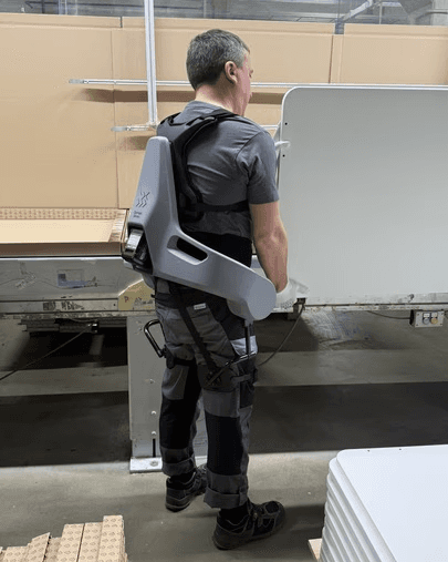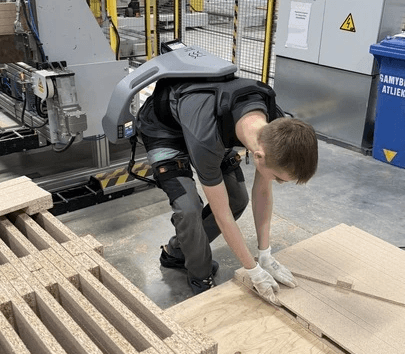 Mit dem Einsatz der Exia-Exoskelette bringt Vilniaus baldai Physical AI direkt an den Ort der Wertschöpfung. Das KI-gestützte Exoskelett unterstützt Mitarbeitende gezielt bei körperlich belastenden Hebe-, Trage- und Absenkbewegungen. Auf Basis realer Bewegungsdaten entlastet Exia aktiv den unteren Rücken, fördert ergonomischere Bewegungsmuster und hilft, repetitive Lasten besser zu bewältigen – ohne die Bewegungsfreiheit einzuschränken oder etablierte Abläufe in der Produktion zu verändern.